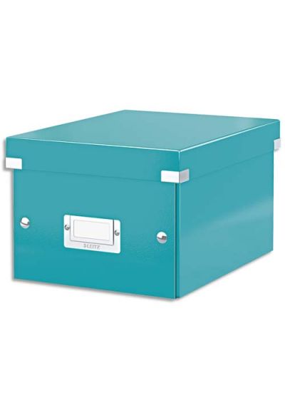 En carton recouvert de papier pelliculé, coins renforcés en métal, livrée à plat
