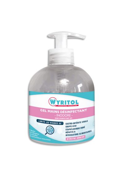 Gel hydro-alcoolique désinfectant pour les mains sans parfum, flacon de 300ml