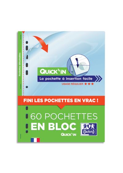 Pochette perforée Quick'In lisse cristal 5/100e, 21x29,7cm, bloc de 60 pochettes