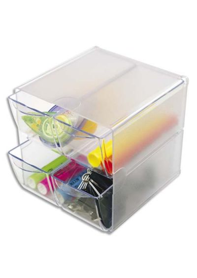Système modulable cube 4 tiroirs en polystyrène transparent, format 15,2x15,2x18,2cm